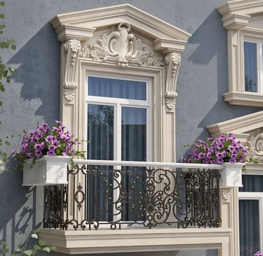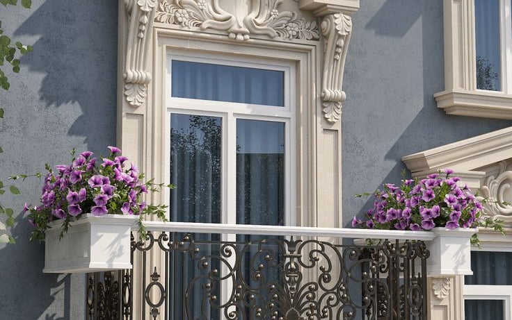 الكرانيش وإطارات النوافذ: لمسات فنية دقيقة تحدد معالم النوافذ والأسقف الخارجية، لتربط بين أجزاء المبنى بتناغم بصري رائع
