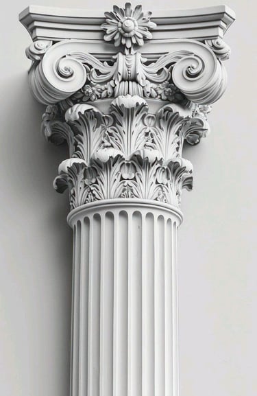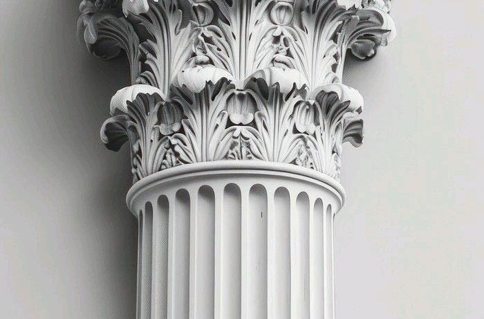 الأعمدة والتيجان المعمارية: تنفيذ أعمدة وتيجان (رومانية، إسلامية، أو حديثة) تضفي طابعاً ملكياً وهيبة على المداخل والواجهات.